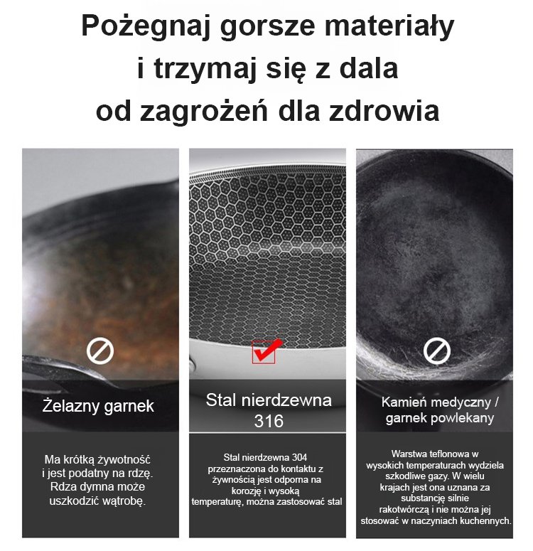 Patelnia ze stali nierdzewnej o strukturze plastra miodu z nieprzywierającym dnem bez powłoki