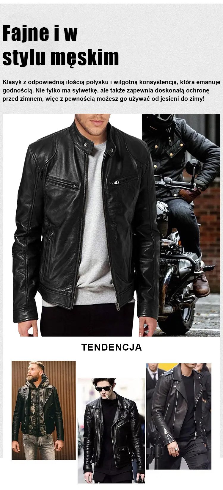 Jesienno-zimowy męski zestaw przeciwdeszczowy z kurtką skórzaną.